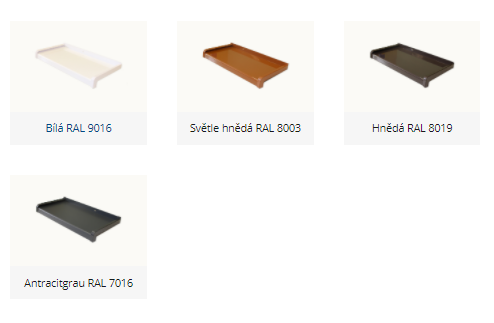 Venkovní parapety – Tažené (extrudované) hliníkové parapety jsou vysoce kvalitní a elegantní parapety. Vyrábějí se ze slitiny hliníku AlMgSi5 metodou vysokotlaké extruze (tzv. tažený profil). Vyznačují se především vysokou mechanickou odolností a prostorovou tuhostí, která usnadňuje montáž a zaručuje perfektní výsledný vzhled. Přední zaoblená hrana a ideální proporce dotváří architektonický detail každé fasády. Hodí se jak k dřevěným eurooknům tak i k plastovým oknům.